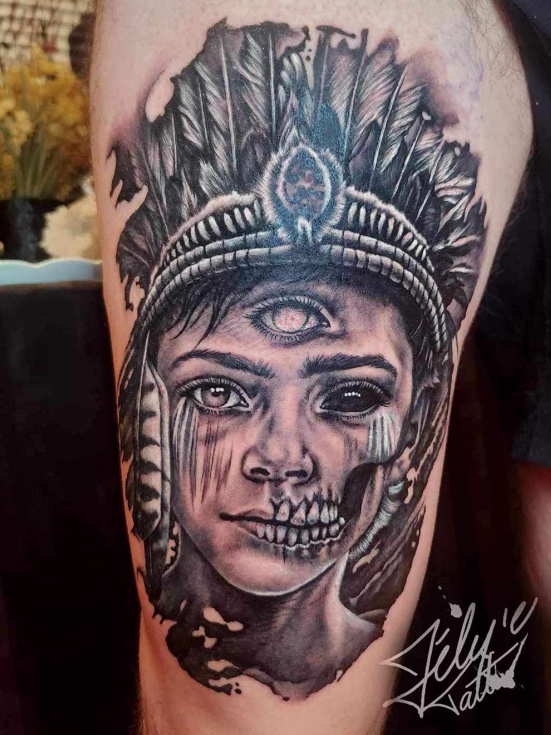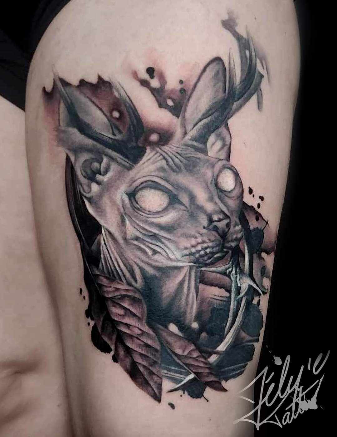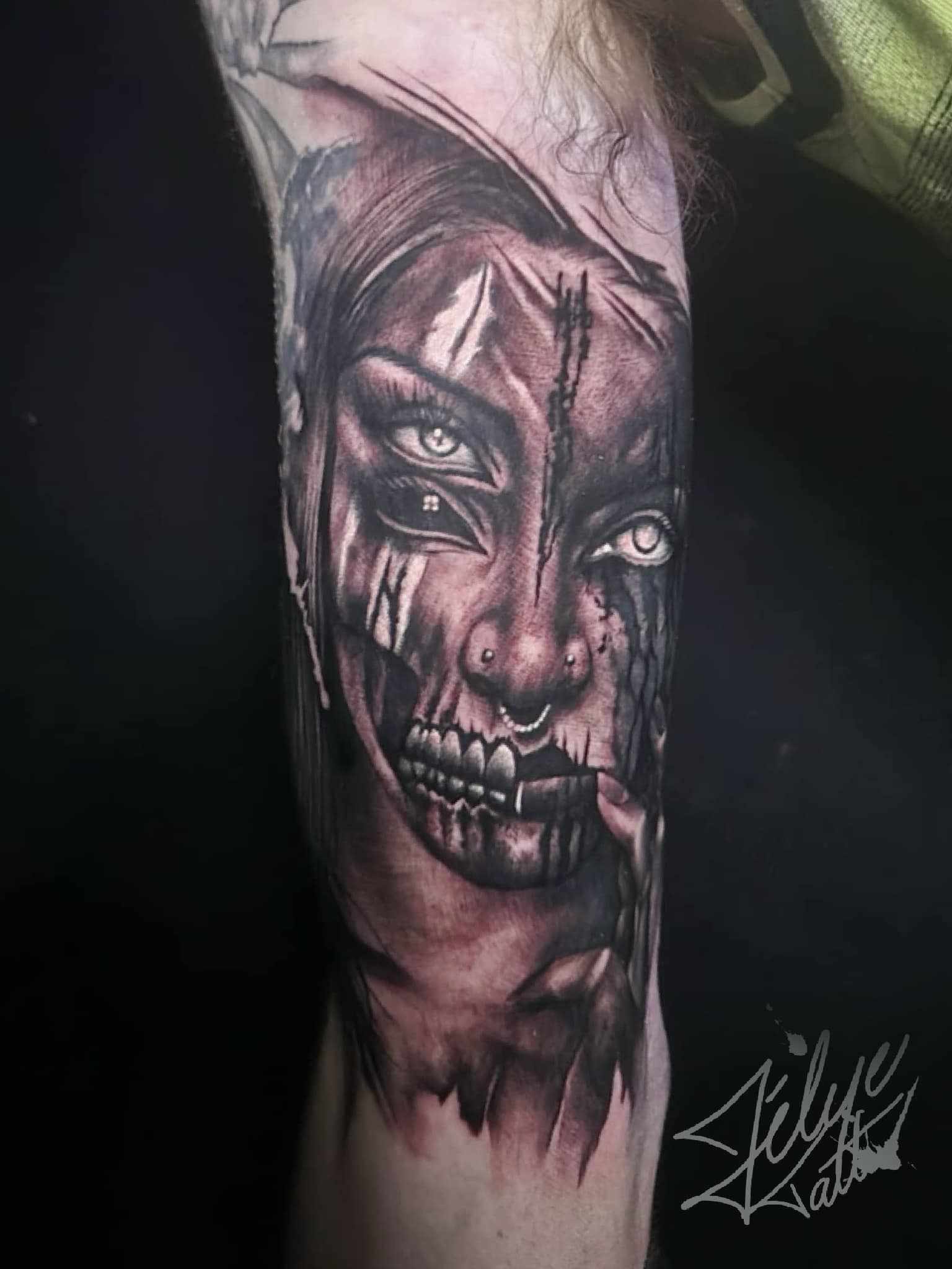 je suis artiste tatoueuse depuis l’âge de 14ans. J’ai eu ma première machine à tatouer à l’âge de 12ans et oui aussi jeune ahahah et cette passion ne m’a jamais lâcher !! Style : Je me spécialise en réaliste trash noir et gris et plus précisément les portraits. Autant animale que humaine, j’adore modifier vos portraits en les rendant plus sombres avec des doubles yeux !!
