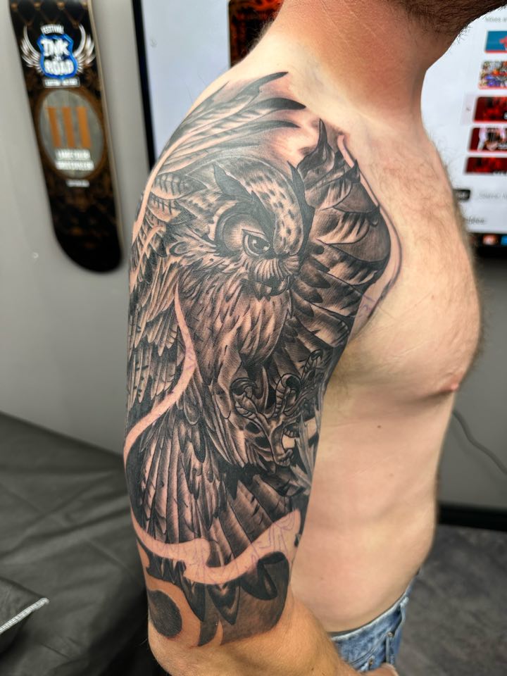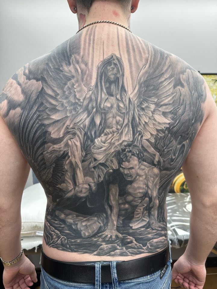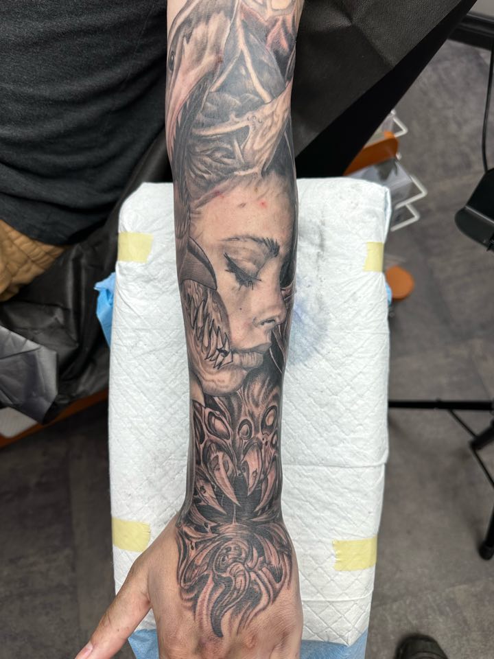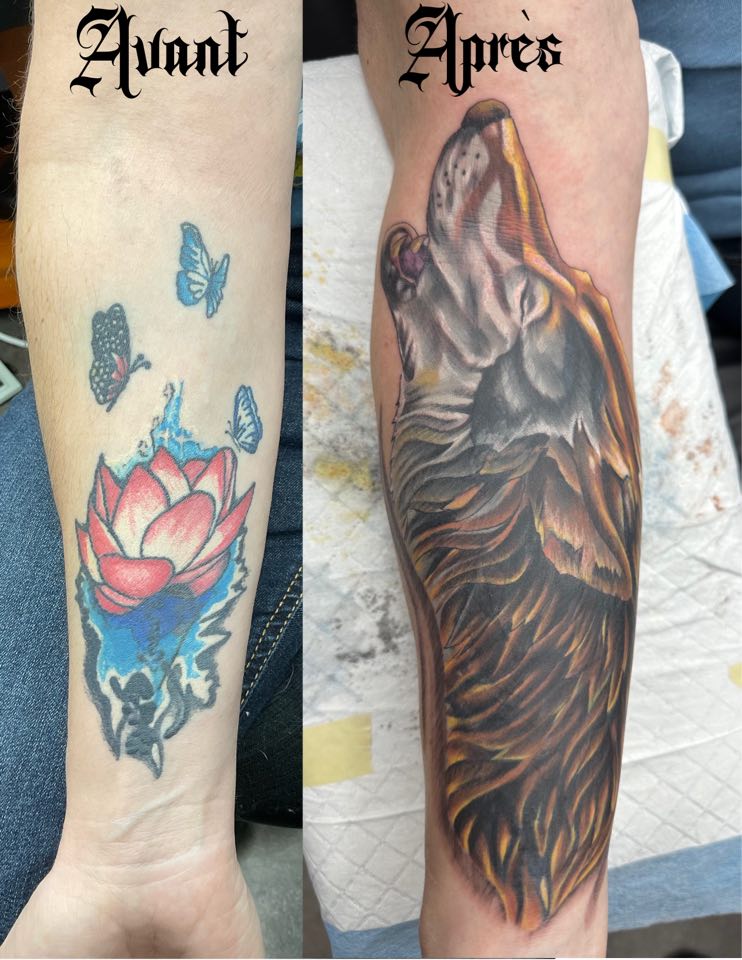 À votre service depuis 1998! Spécialisé en réalisme noir et gris et couleurs. Que ce soit pour des portraits humains ou animales. Reproduction de cover d’album ou de peinture. Mais aimant bien naviguer dans plusieurs autres styles telles que les tatouages d’animes, néo traditionnel et tatouages féminin!